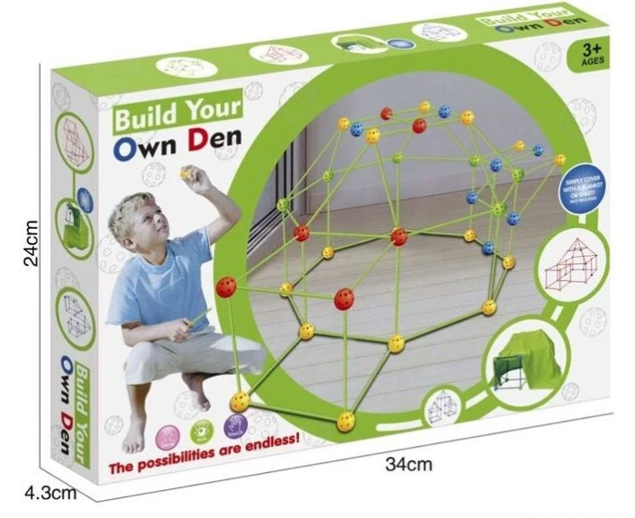 Кожна дитина мріє про свій затишний куточок, де можна сховатися від усіх і пограти з улюбленою іграшкою, почитати книжку або просто посидіти та помріяти про що-небудь. Діти обожнюють будувати будиночки на дереві, на вулиці, під столом або халабуди з підручних засобів, таких як стільці і ковдри. З цим конструктором дитина зможе сконструювати криту намет або, іншими словами, халабуду будь-якої форми і конструкції, за своїм уподобанням.