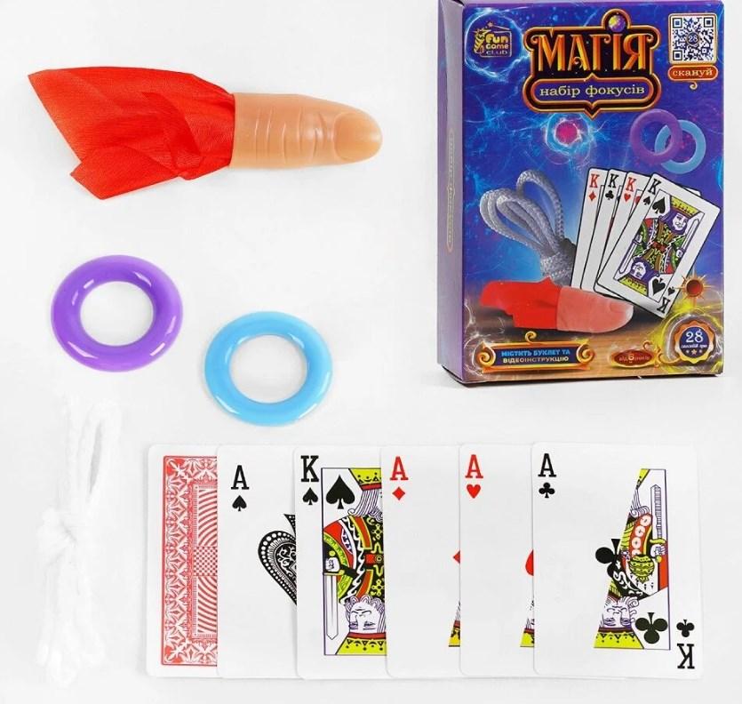 У наборі представлений реквізит, який допоможе юному майстру магічної справи опанувати простими секретами найпопулярніших фокусів.